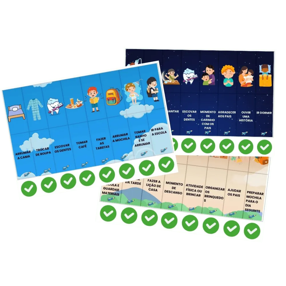 Recurso visual incrível para ensinar rotina e bons hábitos para os pequenos de maneira divertida. Versão disponível para meninos e meninas